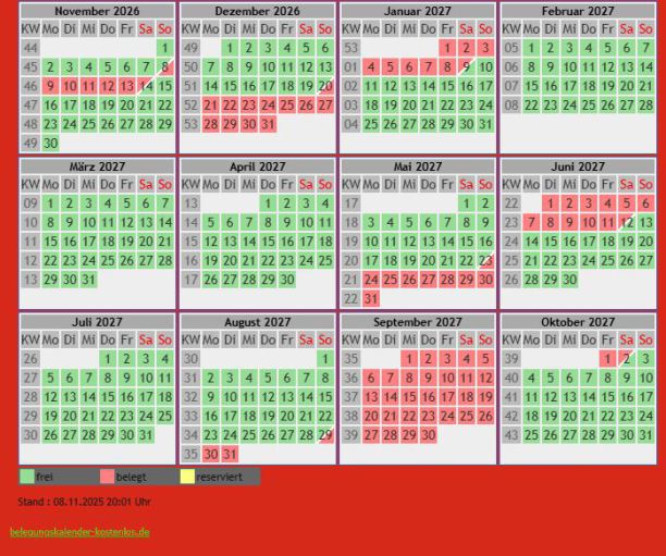 Ihr Browser kann das Kalender-Frame leider nicht anzeigen. Um den Kalender zu sehen klicken Sie bitte hier: https://belegungskalender-kostenlos.de/kalender.php?kid=30527